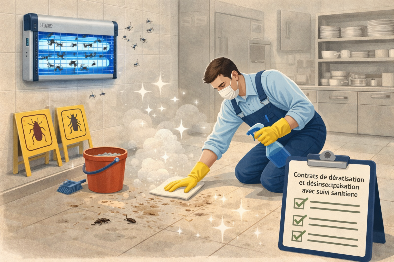 • Élimination des cafards et blattes : application de gels insecticides professionnels discrets, sans interruption d’activité lorsque cela est possible.